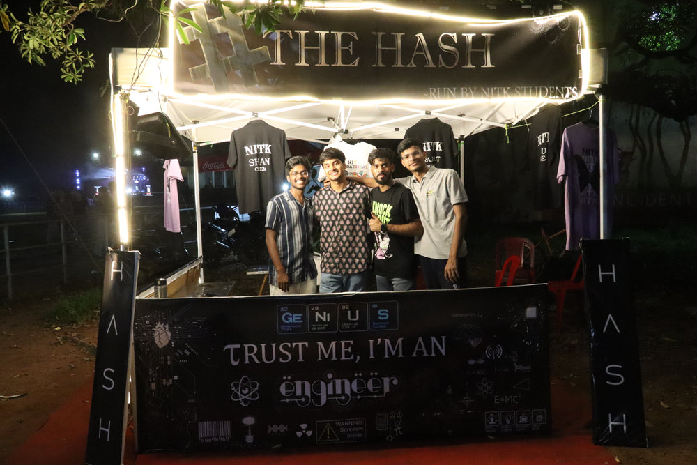 It all started in February 2024, during ‘Incident’ at NITK. Four friends — Ankit, Sutirth, Himanshu, and Hrishab — were tired of seeing overpriced campus merchandise. So, instead of complaining, we decided to create something better. We pooled in ₹25,000 each, bought our first batch of tees, and set up a small stall under a name that carried a part of all of us — HASH (from our initials).